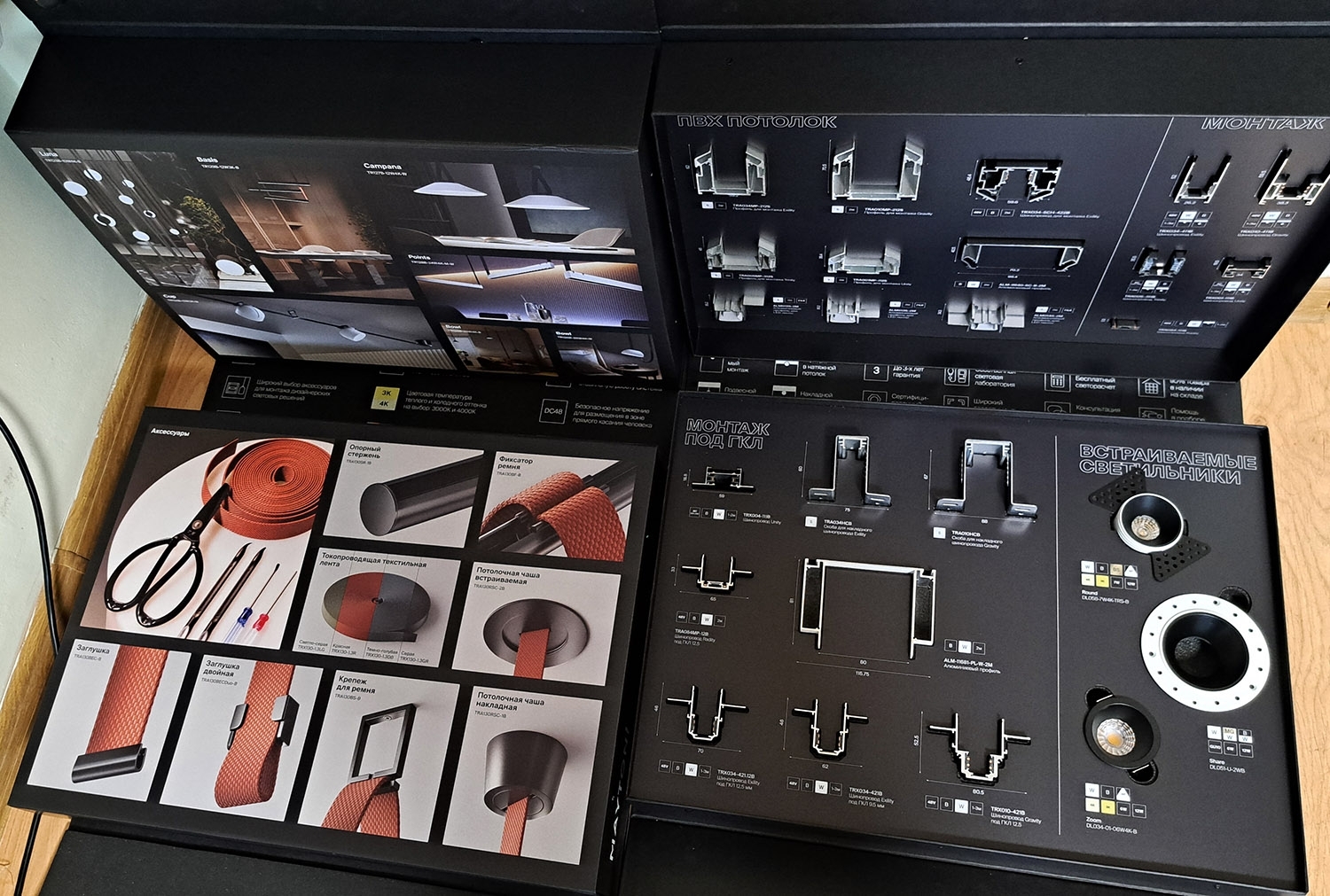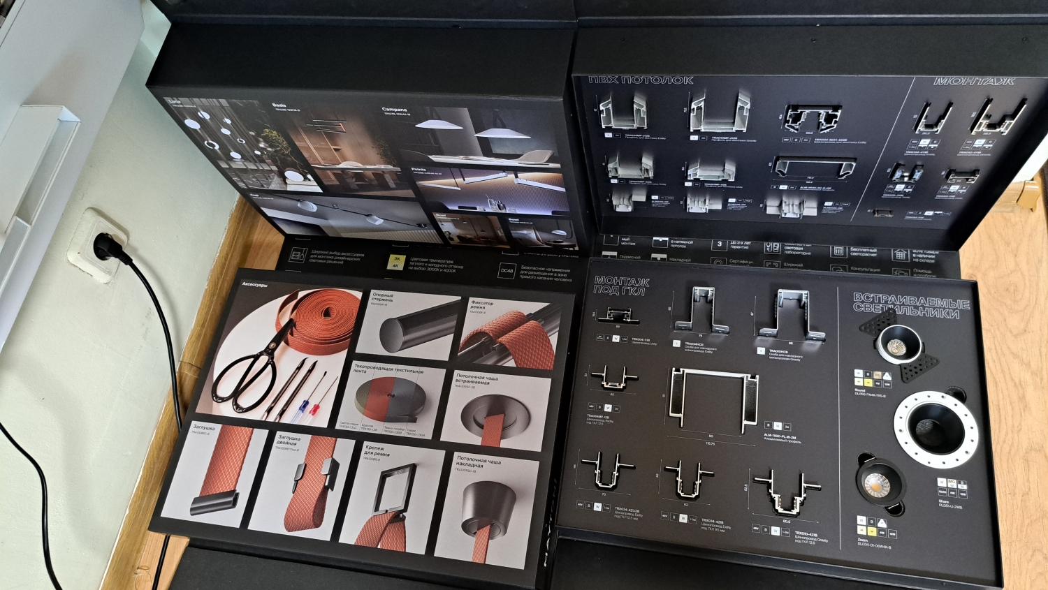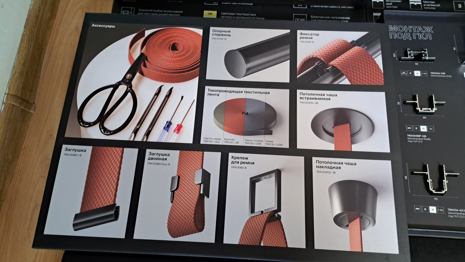 • Ременные - роль токопроводящих жил играет текстильный ремень в который шипами защелкиваются светильники. Новинка. Появились в продаже в 2025 году. Нестандартное решение для освещения. Возможность установить и хорошо вписать в интерьер уже после сделанного ремонта.