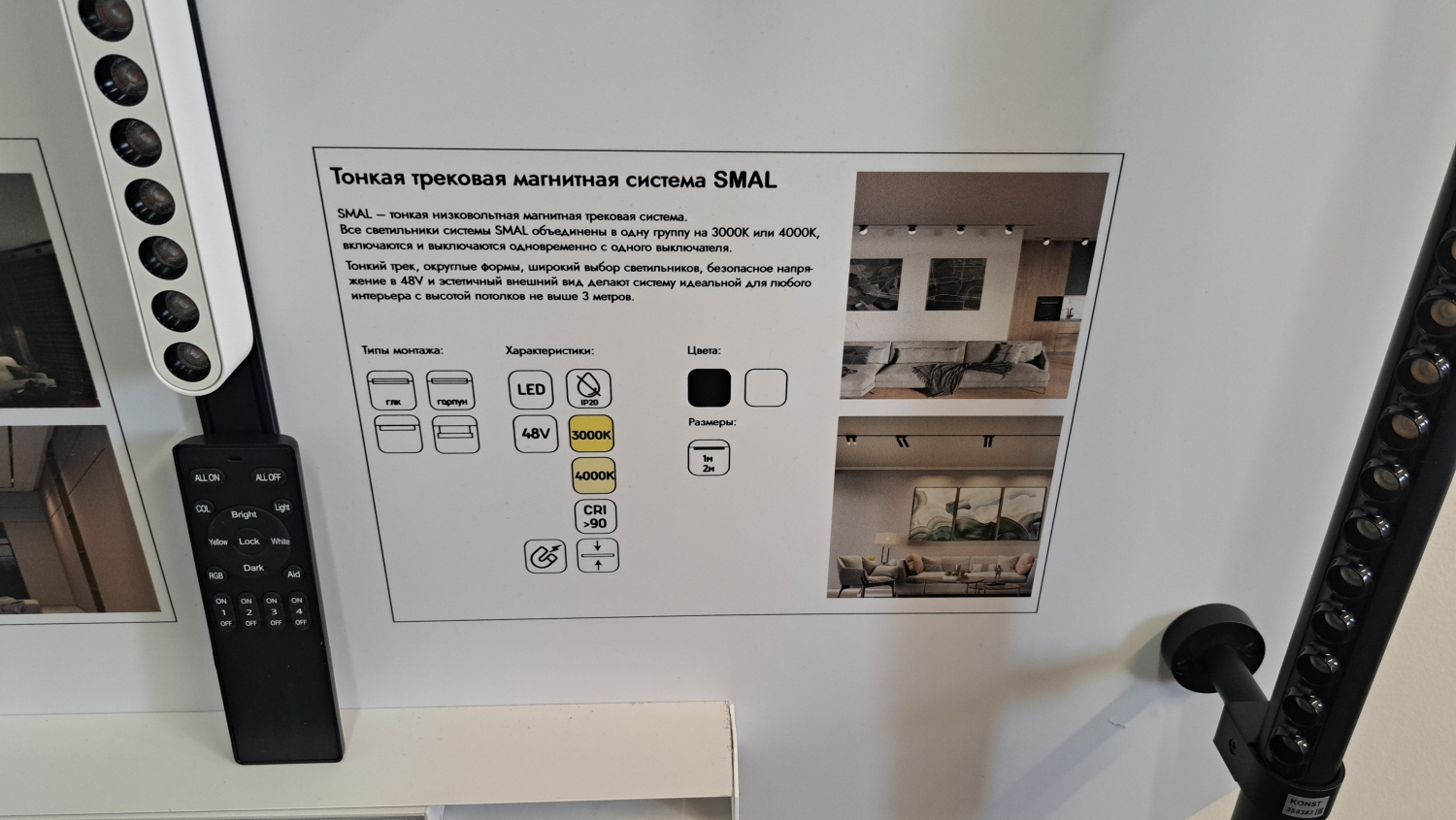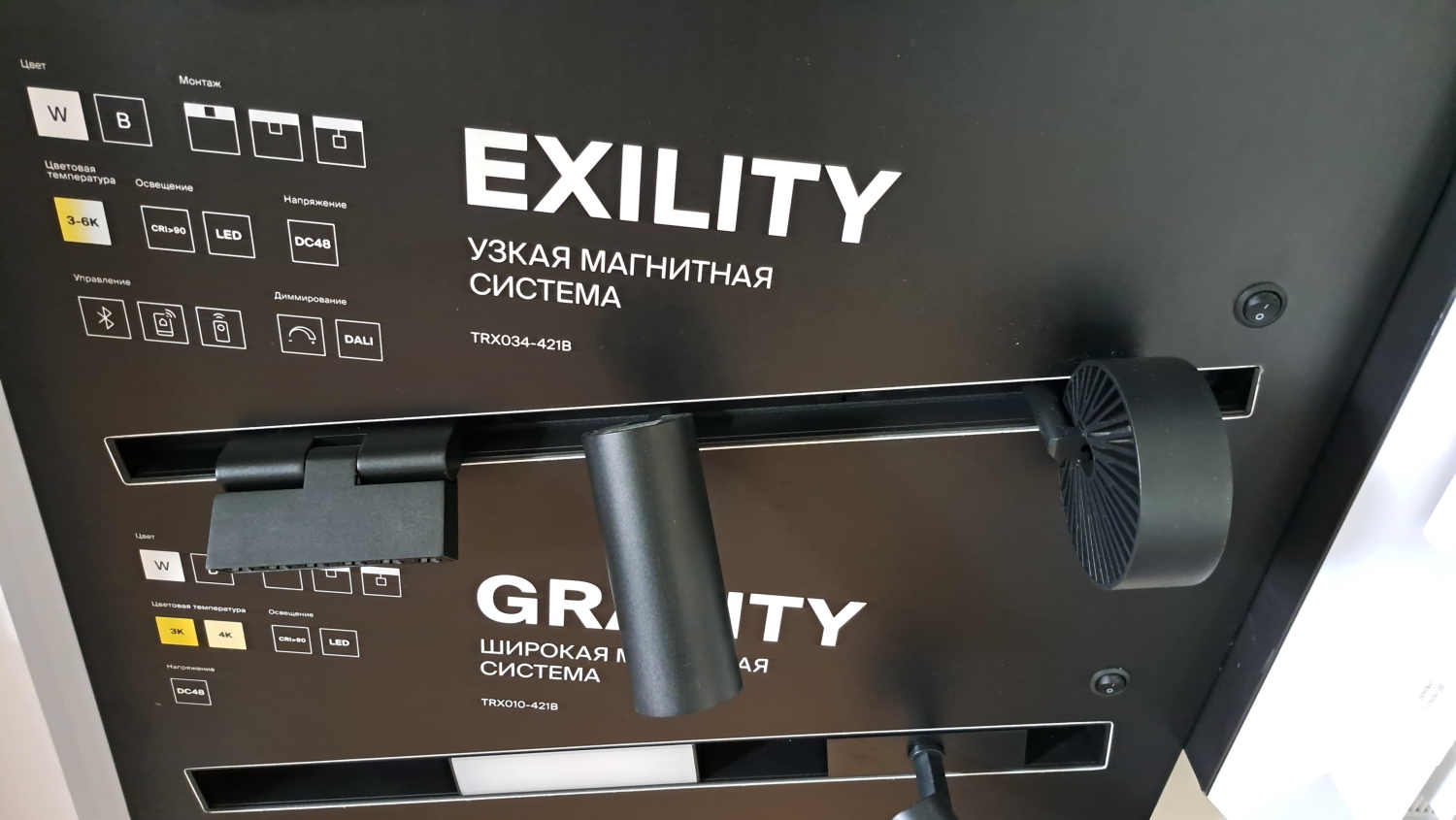 • Магнитные - светильники вставляются в шинопроводы по уровню потолка. Используются чаще всего при встраиваемом монтаже или если нужно провести трек по стене. Обычно работают от напряжения 48В, но бывают исключения. Эти серии треков уже дороже однофазных и трехфазных, поэтому чаще используются для домашнего освещения. SMART функции позволяют управлять освещение по любым протоколам или голосовыми командами через Алису, Марусю и прочих голосовых помощников.
