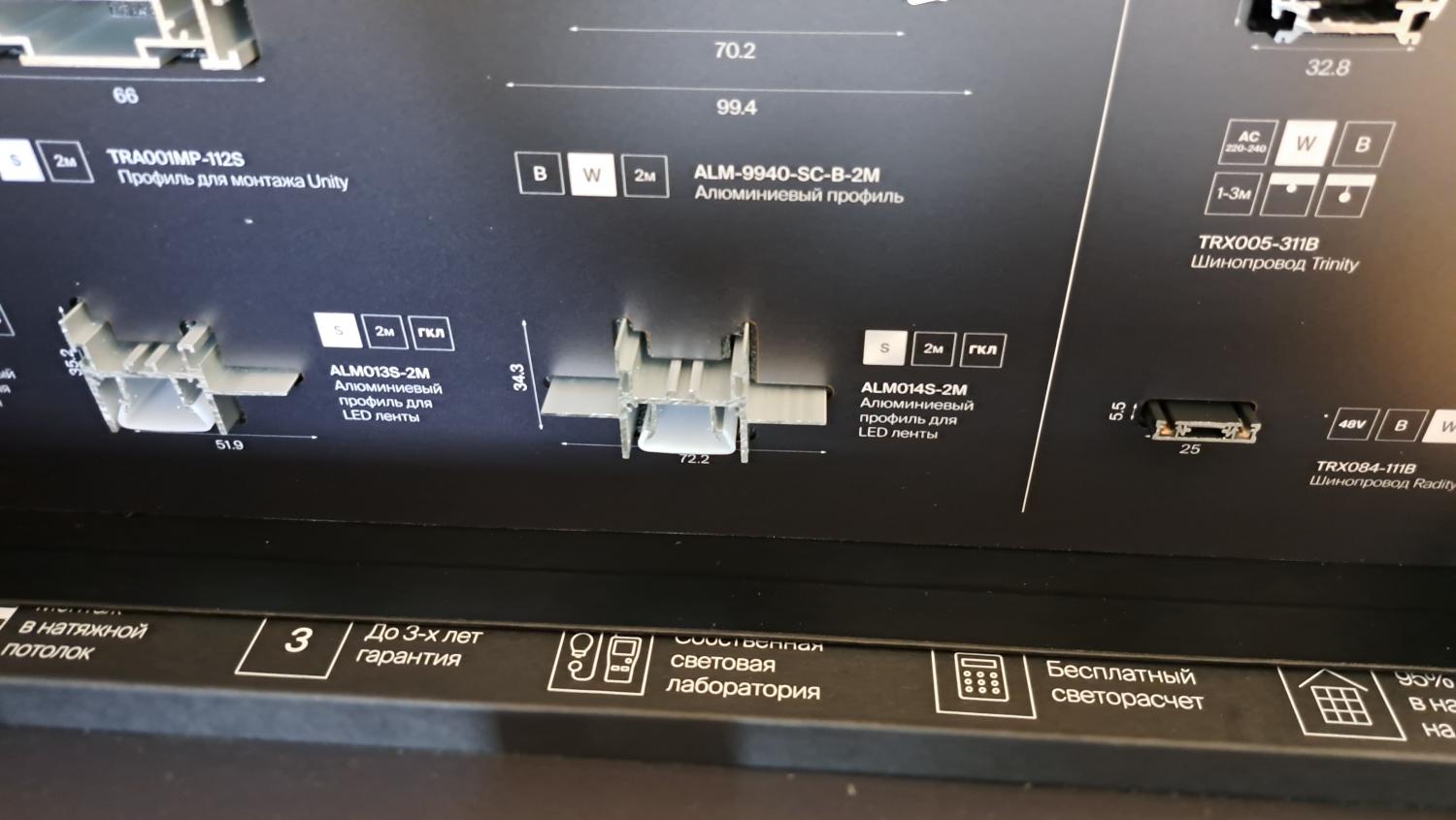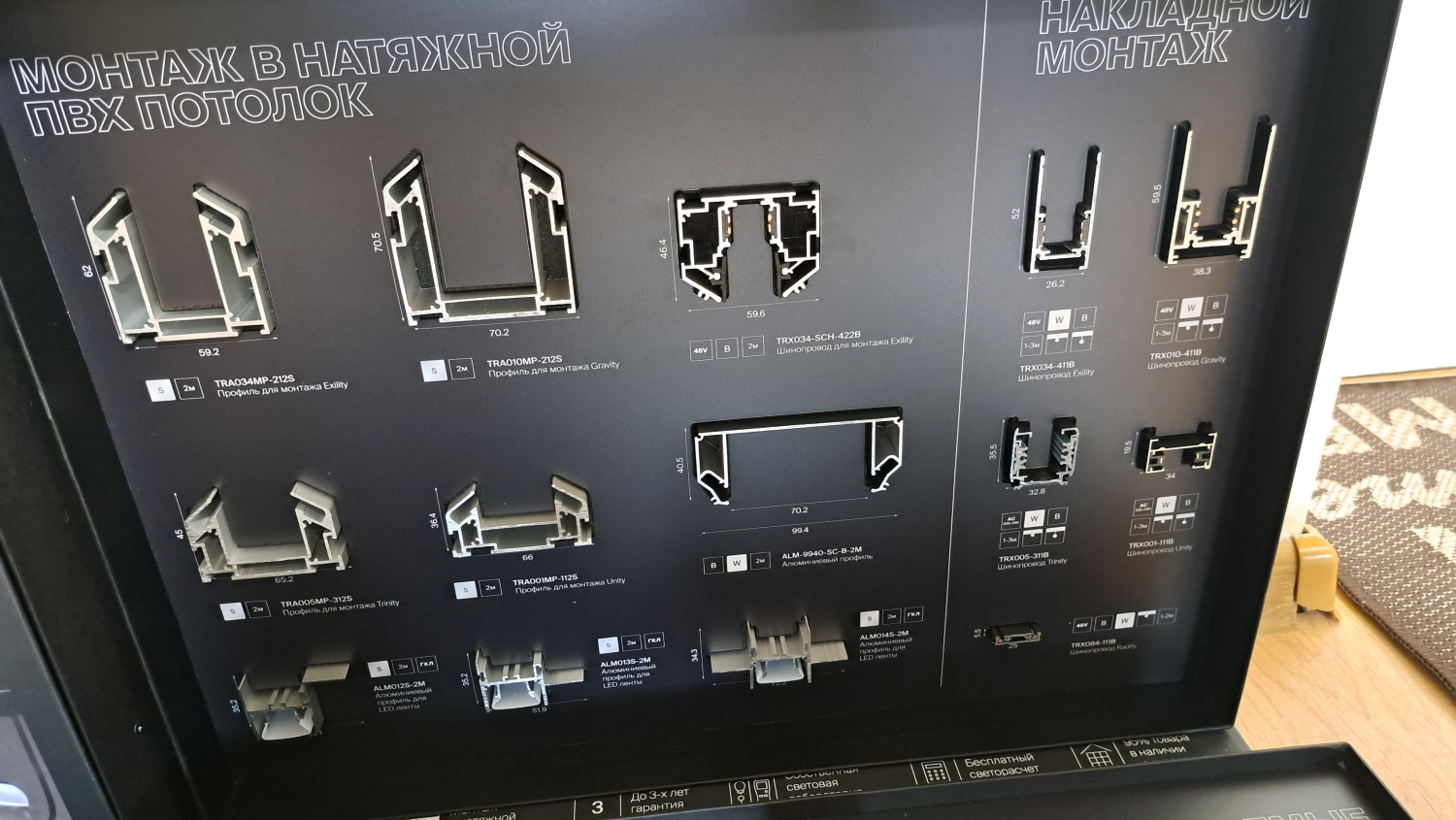 Гарантия на продукцию от 3 до 7 лет. Зависит от марки и серии трековой системы. Замена брака всегда за наш счет, даже при доставке по России.
