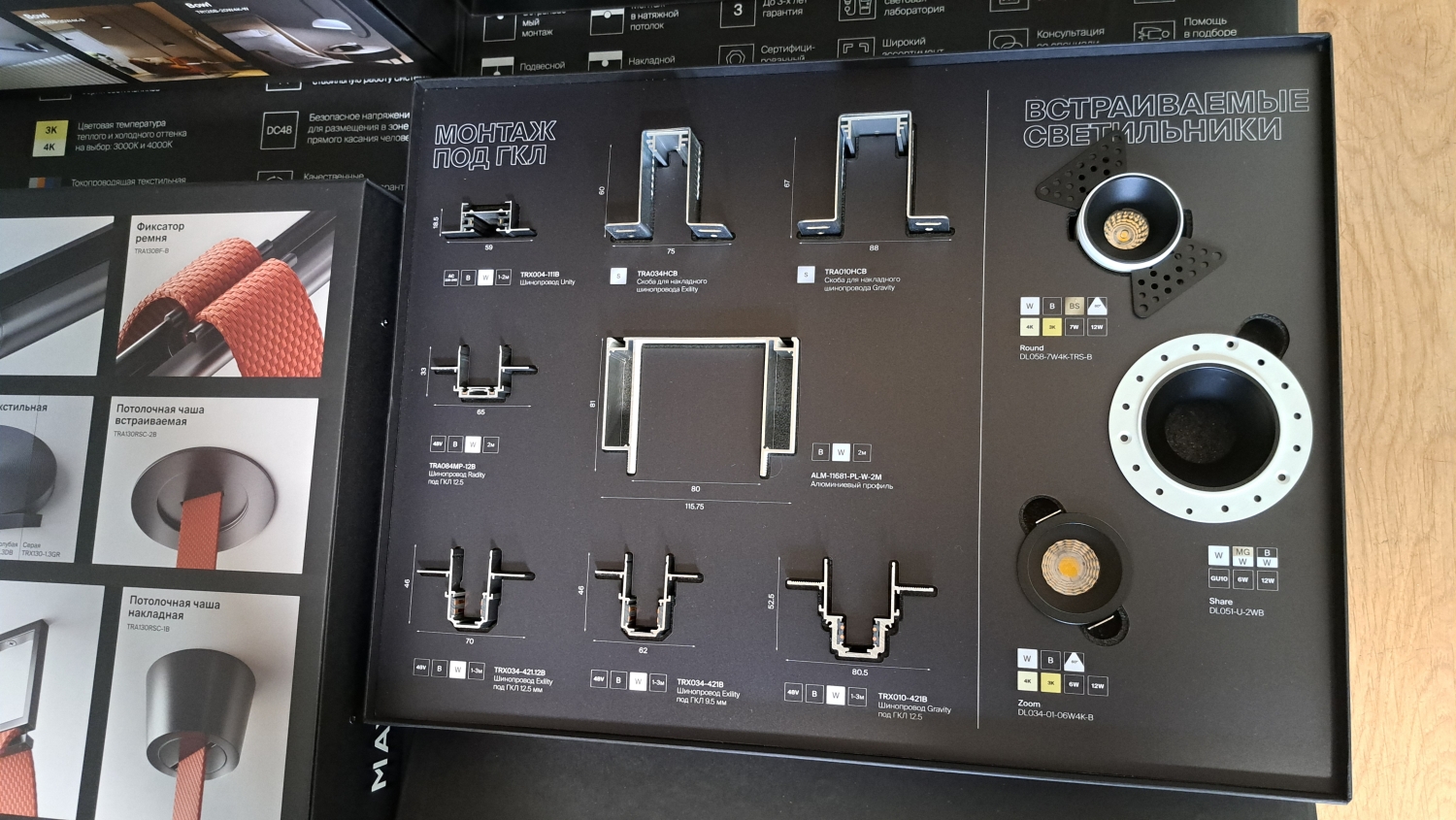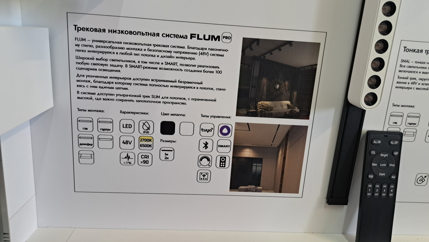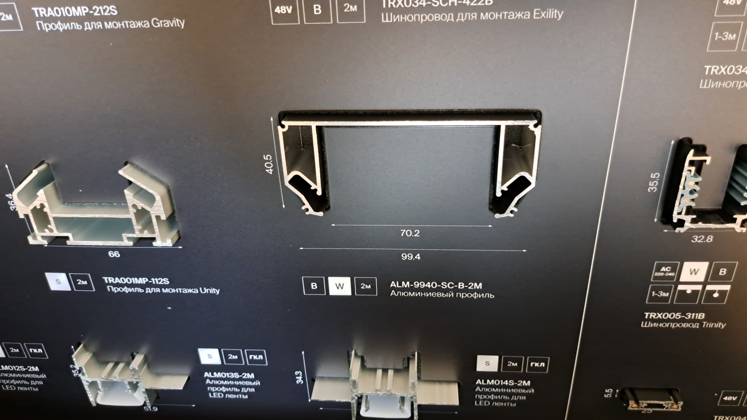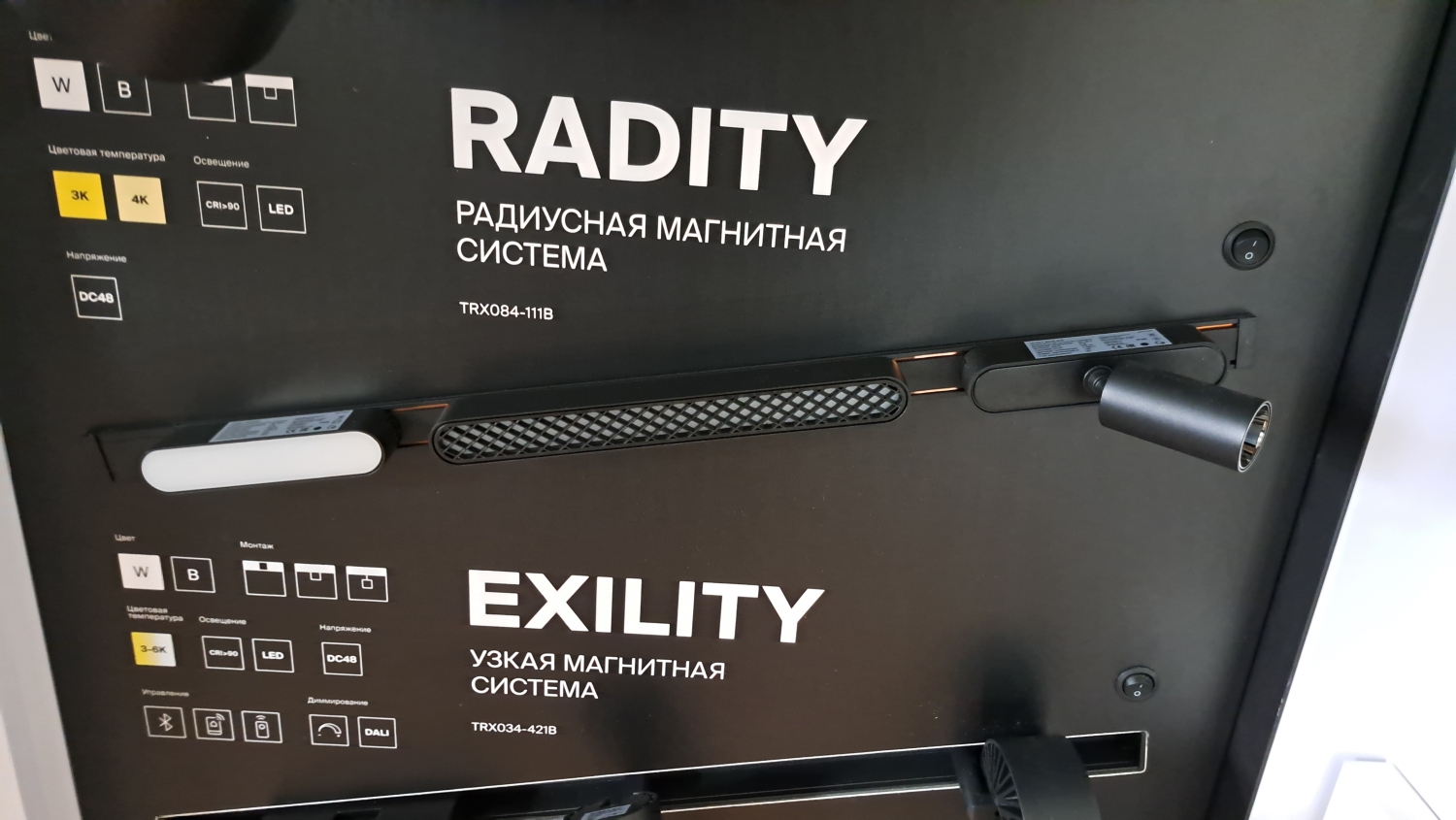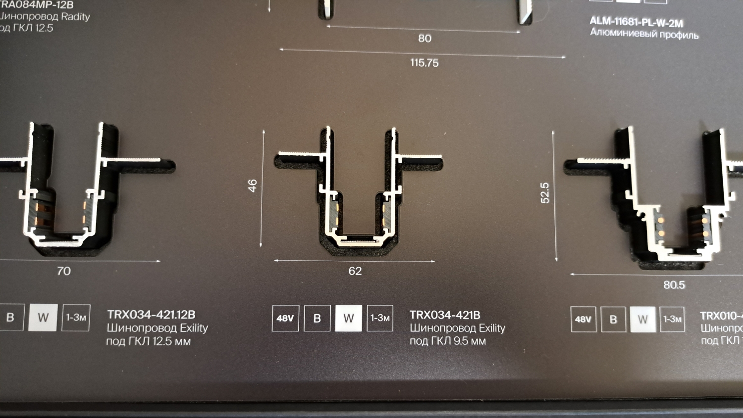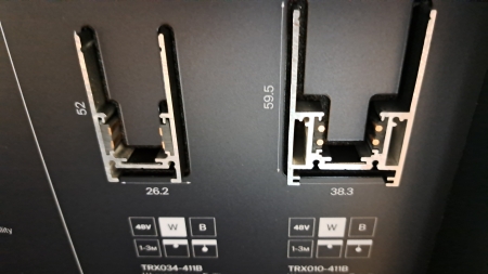 • Плоские 5мм - плоские системы толщиной всего 5-6 мм. Постепенно заменяют однофазные системы. Всегда имеют безопасное напряжение 48 или 24 Вольта. Магнитное крепление светильников дополняет защелки. Хороши для использования на стенах накладным способом.