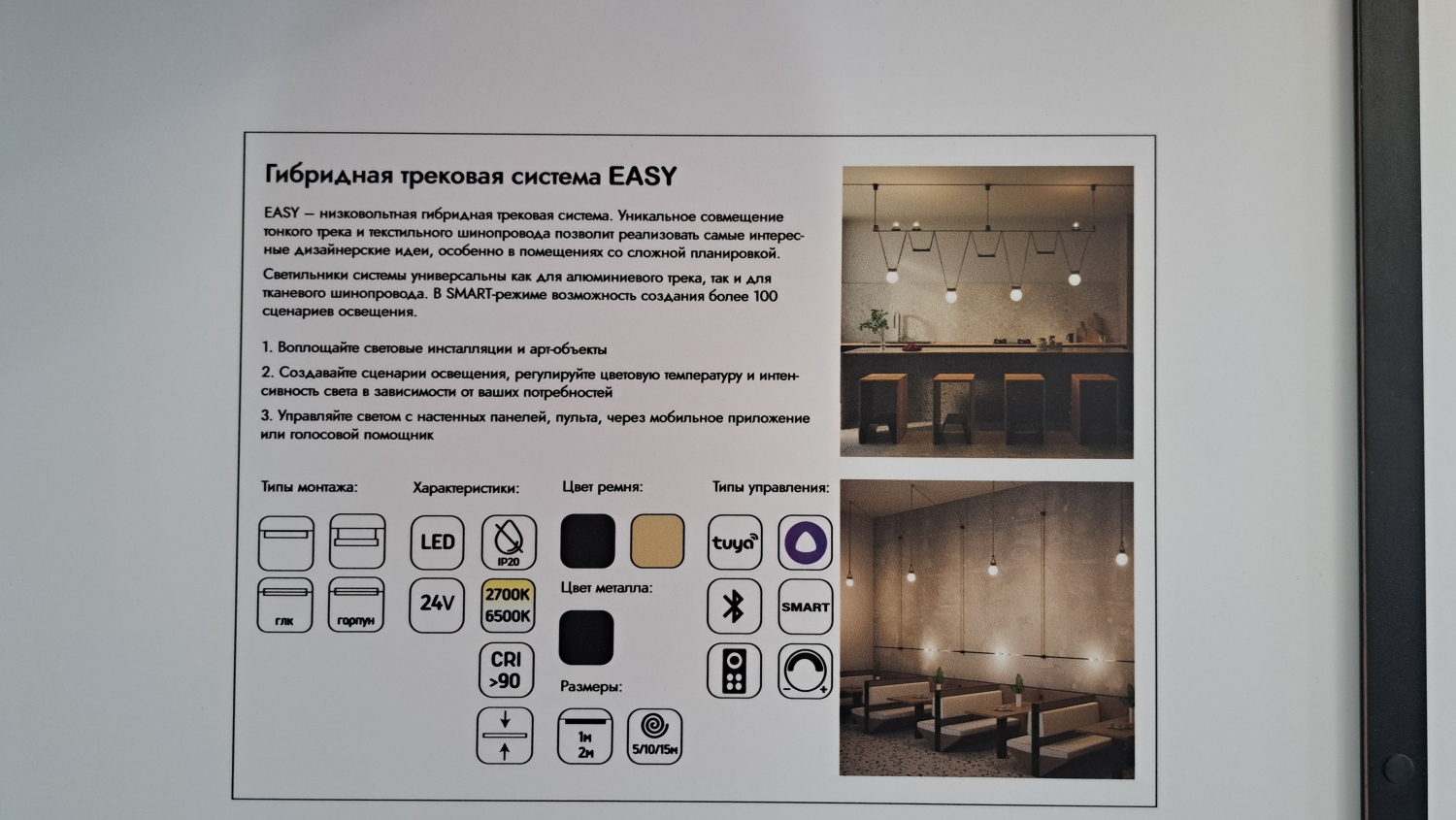 Трехфазные, однофазные, магнитные, струнные, модульные системы. Управление по DALI, Zigbee, TUYA SMART. Диммирование по TRIAC, 0-10V, CCT, Casambi. Не вникайте в технические термины — просто опишите задачу, а мы соберем для Вас подходящую систему.