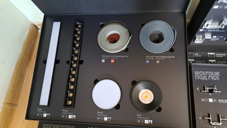 Это сборная система освещения позволяющая реализовать почти любую форму. Она может быть встроена в любой тип потолков и стен, может устанавливаться накладным, отступным или подвесным монтажем.